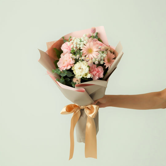 「かわいらしさ」や「愛らしさ」「優美」といった意味合いをもつピンク色の花束は女性への特別な贈り物としておすすめです。季節ごとのお花をお好きな器に飾ってお楽しみ頂けます。