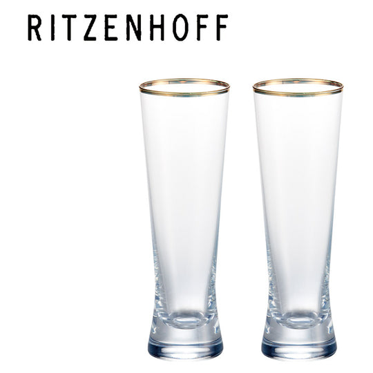 ビールの本場ドイツ最大のグラスメーカーRITZENHOFF (リッツェンホフ)のビアグラス2客セットは、使いやすい小ぶりな大きさと、ゴールドのリムが上品なグラスです。適度な厚さの飲み口とシンプルなフォルムで使いやすさ抜群のこのビアグラスセットは、特別な贈り物としてもおすすめしたいアイテムです。