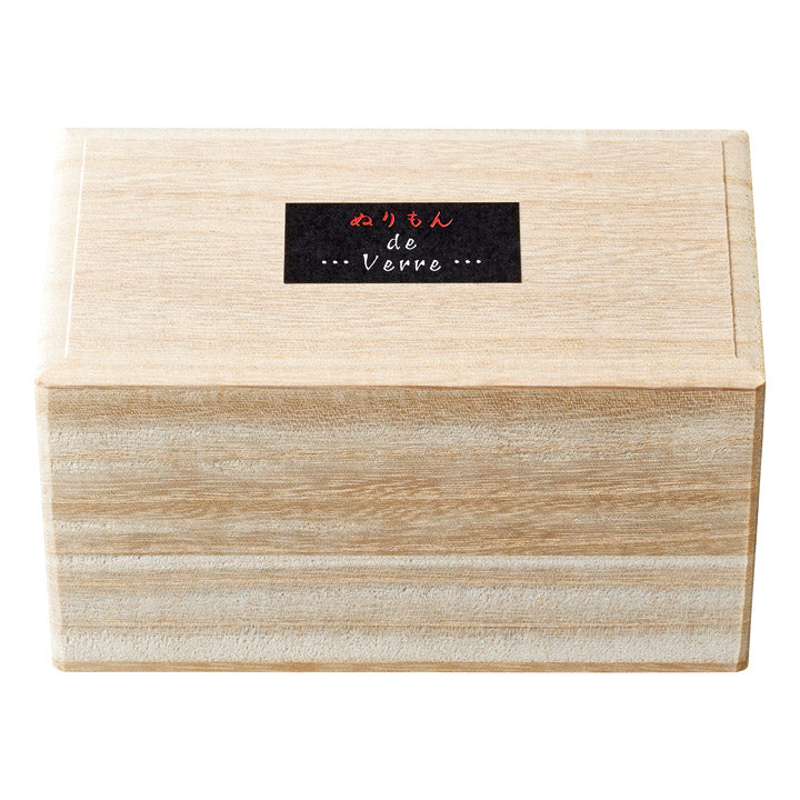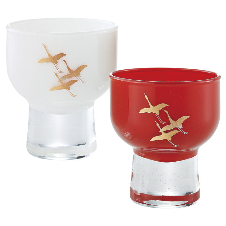 和歌山県海南市の北西部「黒江地区」を中心に生産されている紀州塗は、会津塗(福島県)、山中塗・輪島塗(石川県)などと共に漆器の全国三大産地の一つとして知られています。江戸時代には1200軒以上の漆器関係者が黒江周辺に住んでいました。今でも黒江地区には多くの人が漆器に関わる仕事につき、ものづくりの精神と技術が継承されています。その歴史や功績が認められ、紀州漆器は1978年に国から伝統的工芸品に指定されました。紀州漆器で培ったノウハウで、透明感のあるガラスに塗りと蒔絵を施した紅白の盃。伝統の技を活かしつつ、現代のライフスタイルに合うように考案されました。紅白のおめでたい〝ぬり色〟に、下絵が乾く前に金や銀、その他の色粉を蒔き分けて装飾する、漆器ならではの現代蒔絵という技法で千羽鶴を描きました。通常、ガラスとぬりものは相性が悪く、長い間敬遠されてきましたが、特殊な下処理を施すことにより、独特な和のぬりものの風合いをガラスに表現することができました。【商品】盃(約口径5.6×高さ6.5cm・70ml)×2、桐箱入