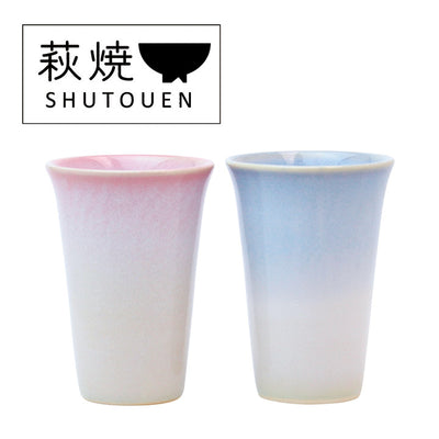 萩焼窯元萩陶苑では、創業から40年、「生活のワンシーンに萩焼を」をコンセプトに、お料理を楽しむ器として、萩焼がより身近な存在になることを願い、「生活食器」としての萩焼にこだわって作り続けてきました。「萩焼のことを知らない人たちに、もっと萩焼のことを知ってもらいたい」という思いを胸に、現代の生活や感性にマッチしたデザインの商品開発を目指しています。萩焼は長年使い込むことでだんだんと味が出て深みが増します。その変化の仕方は、使う人によってさまざまです。日々繰り返される食事の時間にも、誰とどんなものを食べたのか、そのひとつひとつに物語と思い出があり、萩焼の器は経年変化を通してその時間を共有します。ほんのりと色づく花のつぼみのように淡くやさしい色合いが特徴の「つぼみ」のギフトセットを2種類ご用意しました。萩焼の本来の色合いや色の移ろいを知り、共に過ごした「時」を感じてください。あらためて器を見たとき、そこには何気なく繰り替えされてきた「コト」が刻まれます。【商品】カップ(約口径8×高さ11cm・240ml)×2