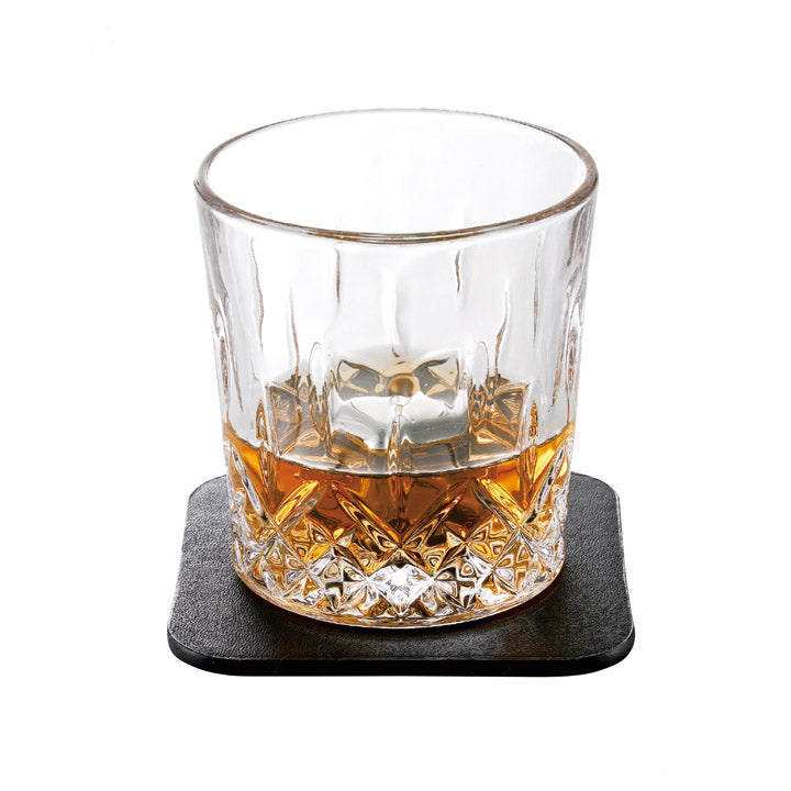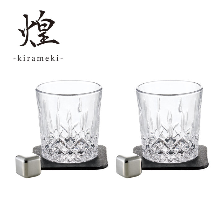 ロックグラスとフローズンメタルのセット。氷の代わりとして使えるフローズンメタルは飲み物が薄まらず、お酒本来の味わいが楽しめます。【商品】グラス(約口径8.5×高さ9.2cm・320ml)・フローズンメタル(約2.5×2.5×2.5cm)・コースター各2