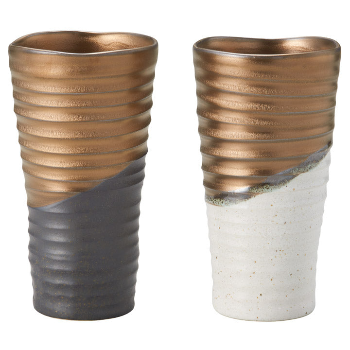 煌びやかな金彩がモダンでシックなペアカップ。重厚感のある金色がポイントです。【商品】タンブラー(約口径8.5×高さ15cm・450ml)×2、木箱入