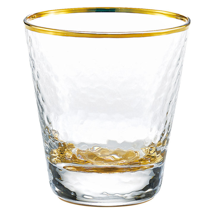 凹凸が美しいグラスの口元と底部にゴールドを施した華やかな印象のグラスです。【商品】グラス(約口径9×高さ9.4cm・300ml)・ボックス(約13.2×12.7×高さ11cm)各1
