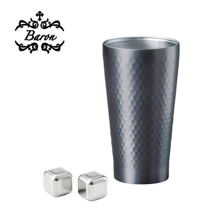 温かさも冷たさも逃がさない真空二重構造カップと氷の代わりに使えるフローズンメタルのセットです。【商品】タンブラー(約口径7.4×高さ13.5cm・350ml)×1・フローズンメタル(約2.5×2.5×高さ2.5cm)×2、木箱入