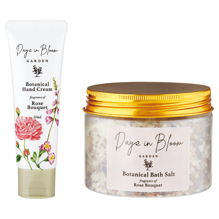 花々とハーブのブレンドアロマに包まれるハンドクリームとバスソルトで特別なひとときを過ごします。【商品】ハンドクリーム50ml・バスソルト260g各1 ●内容:バスソルト用巾着付 ●ハンドクリーム/中国製、バスソルト/日本製