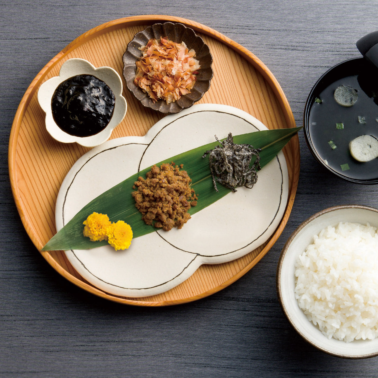 焼海苔佃煮85g・塩昆布18g各2瓶・鰊フレーク50g・鮭フレーク40g各1瓶・永谷園お茶漬け海苔(4.7g×2袋)2箱・鰹本枯節(2.5g×3袋)・松茸風味お吸い物(2.3g×4袋)各1箱