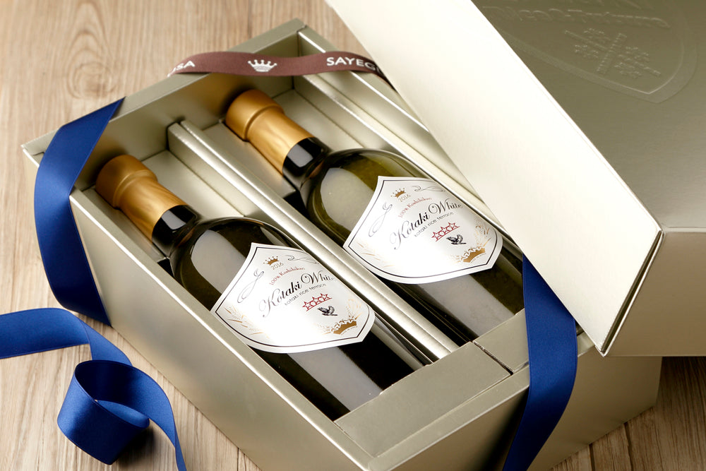 シャンパンゴールドのオリジナル化粧箱でお届けいたします。