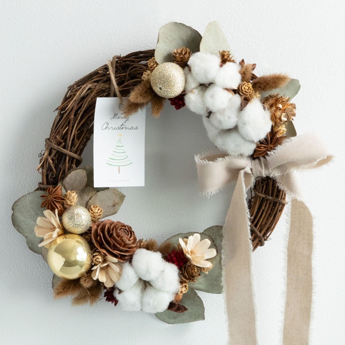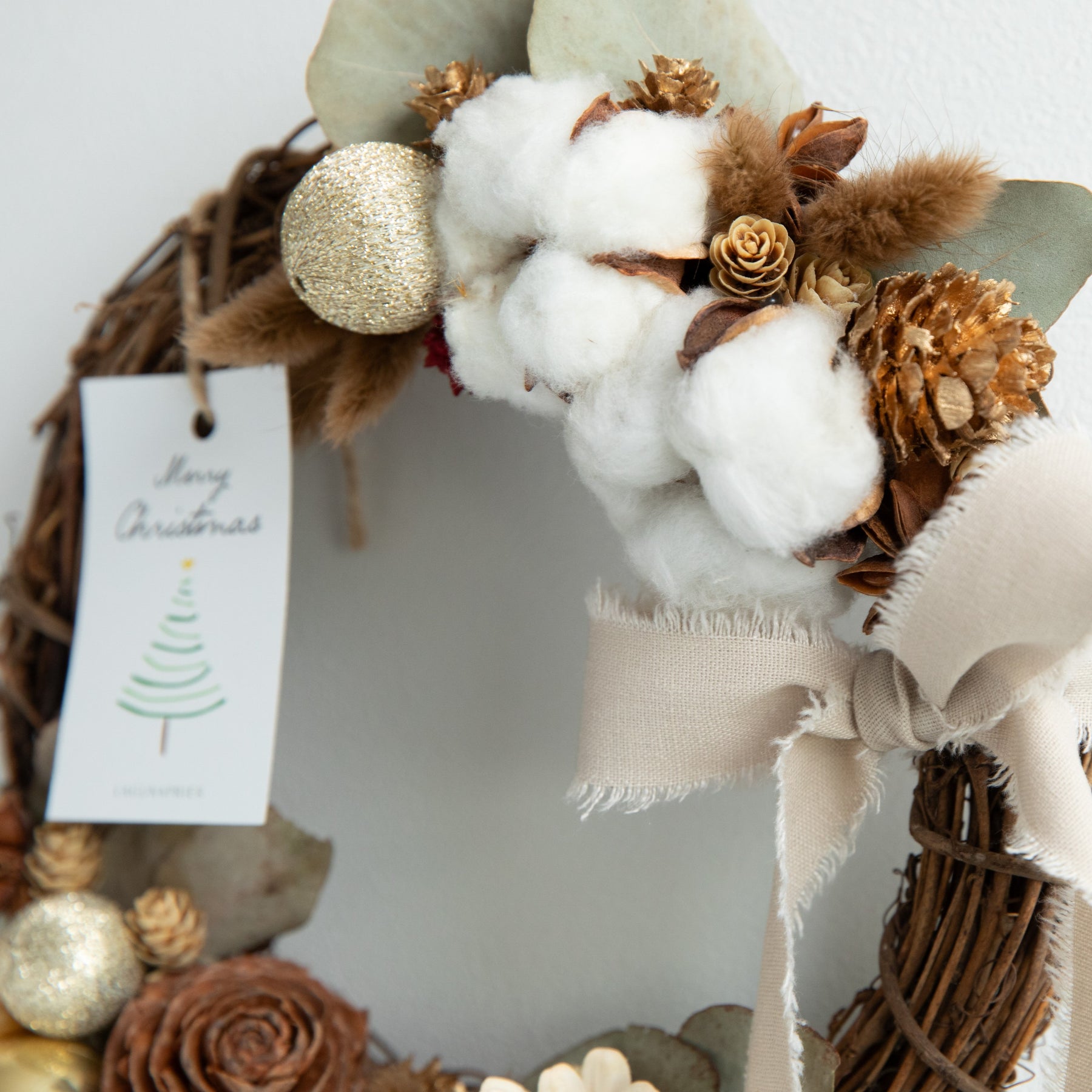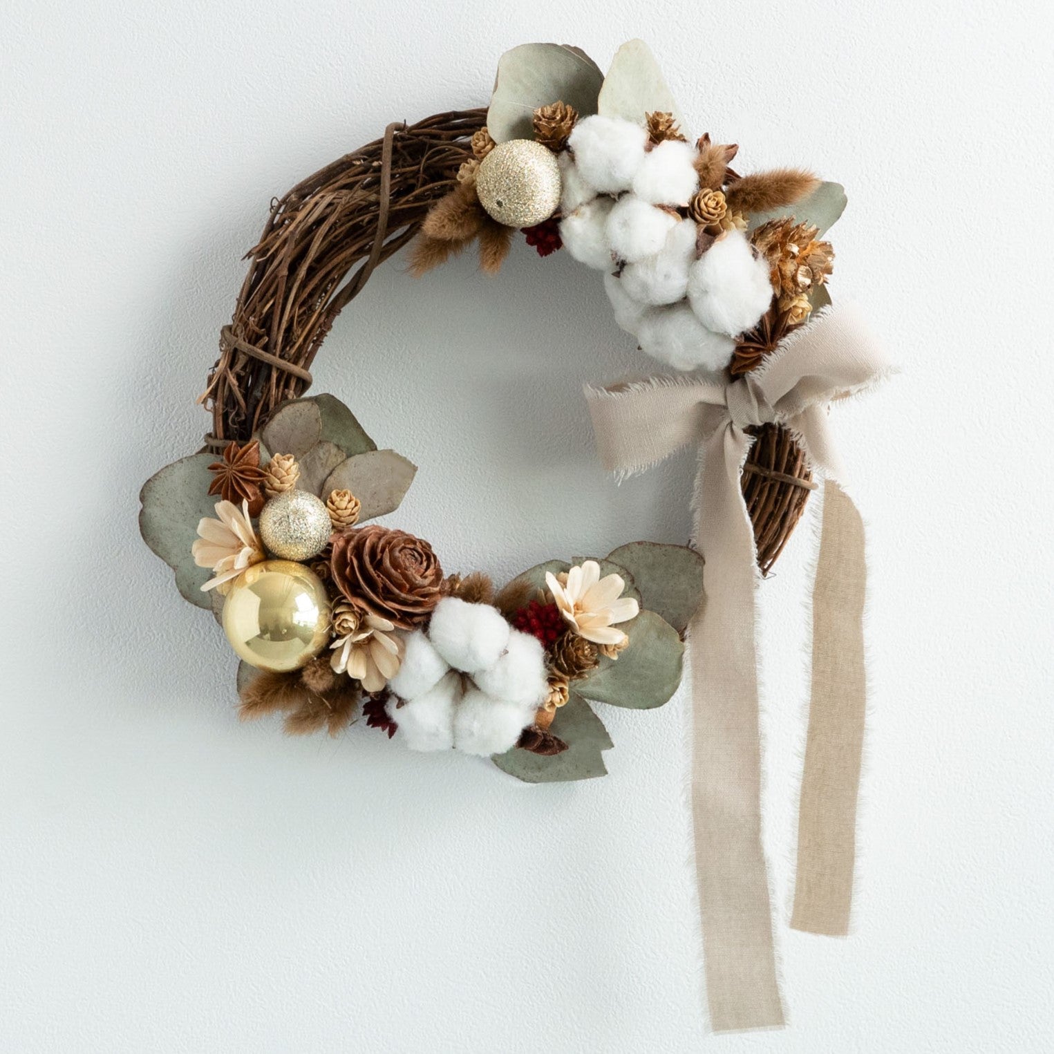 ・素材:ドライフラワー、コットンフラワー、木の実、オーナメント、リボン
