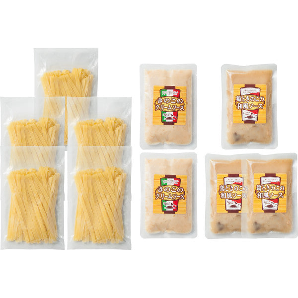 ●生パスタ100g×5、きのこと蒸し鶏の和風ソース130g×3、きのこクリームソース130g×2