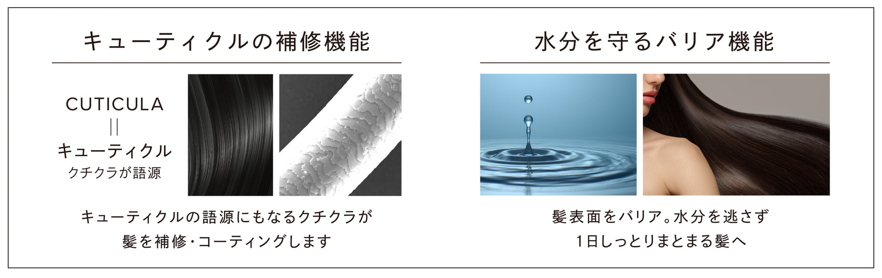 3、水分を逃さない【椿葉クチクラ※3で髪のうるおいを強力バリア】