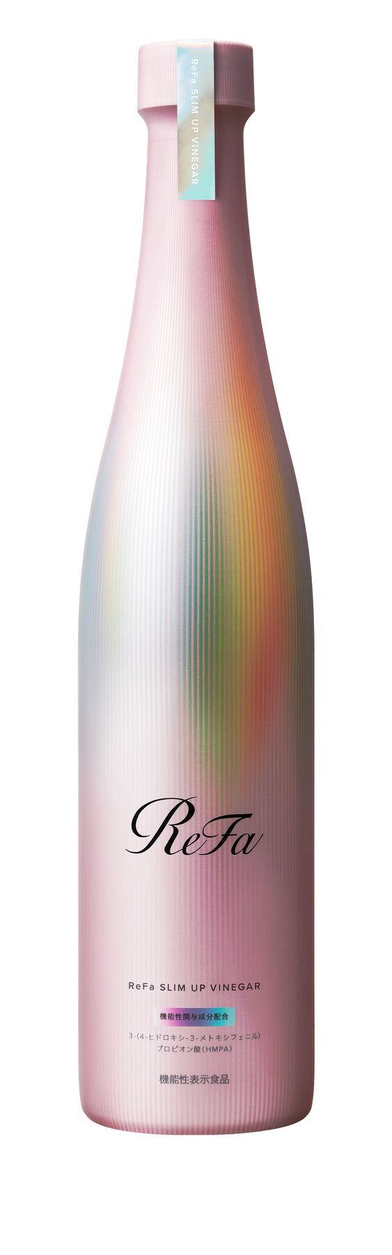 リファスリムアップビネガーは、BMIが高めの方のお腹の脂肪※3と、ウエスト周囲径を減らす機能性関与成分「HMPA※1」を配合。HMPA※1は、腸内環境に左右されにくい『コアポリフェノール®』※1で、糖や脂肪を消費しやすくするポリフェノールの作用を