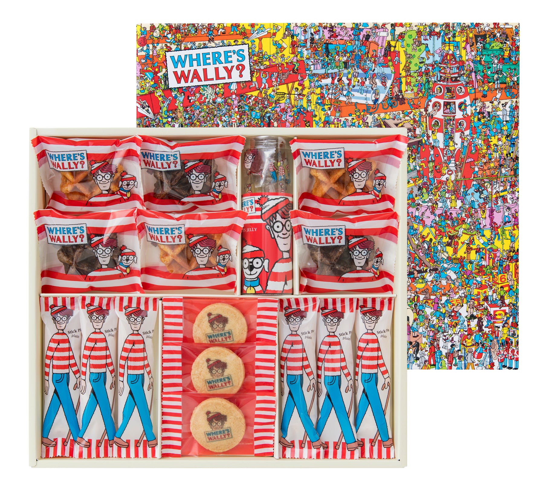 化粧箱では「ウォーリーをさがせ!」を楽しめる遊び心ある仕様。ウォーリーのオリジナルプリントクッキーと食べ応えのあるワッフル、サクッとした食感が楽しいステックパイ、色とりどりのフルーツゼリーを詰合せにしたギフトセットです。ご友人やお子様をお持ちのご家庭への贈り物にぴったりです。