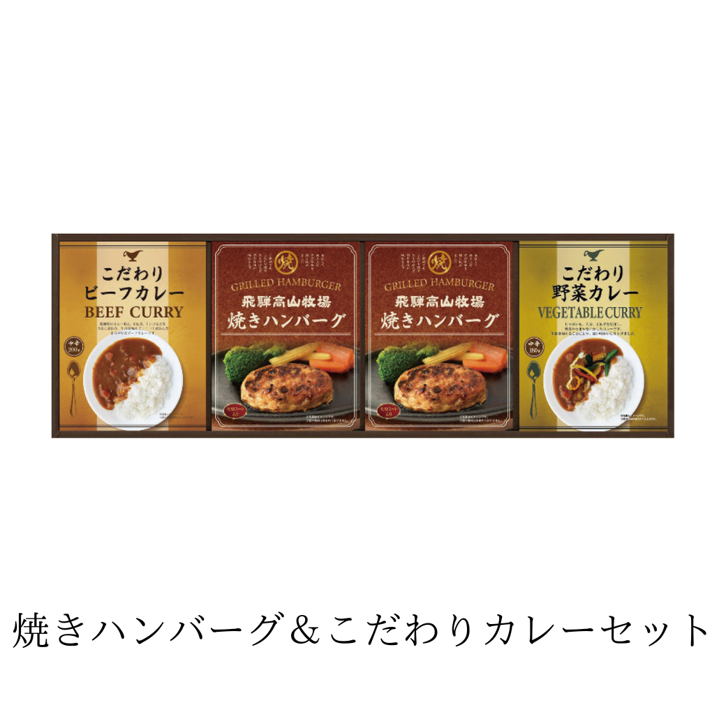 焼きハンバーグ100g×2個・こだわりビーフカレー180g・こだわり野菜カレー180g各1個