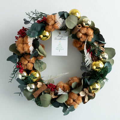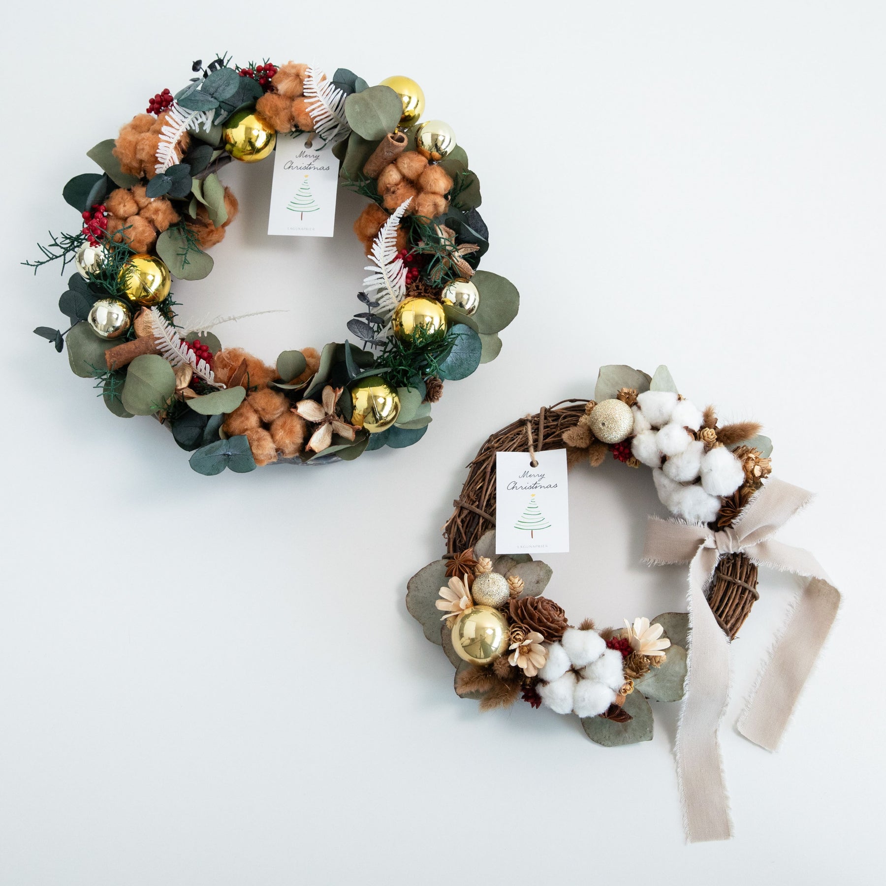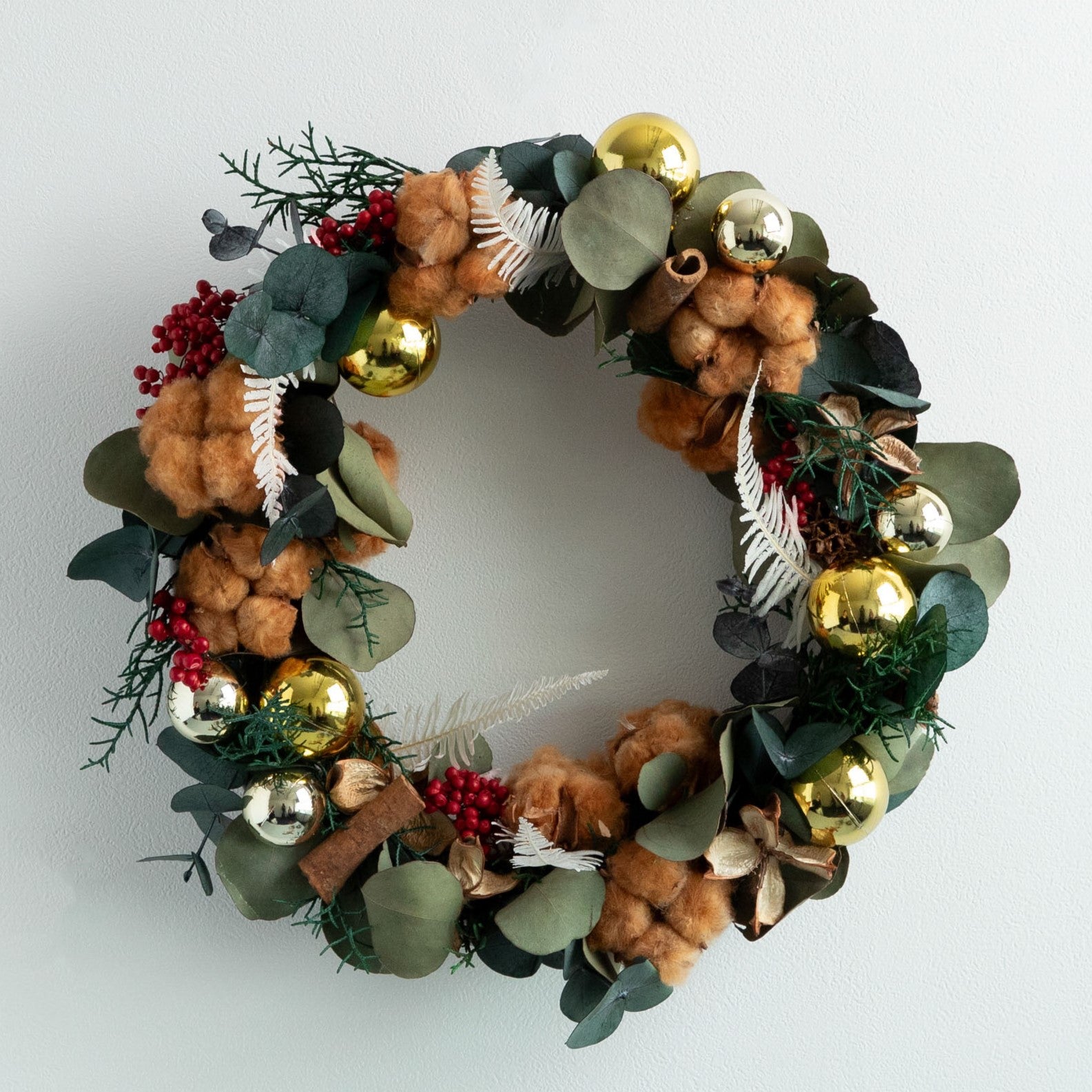・素材:ドライフラワー、コットンフラワー、木の実、シナモン、オーナメント