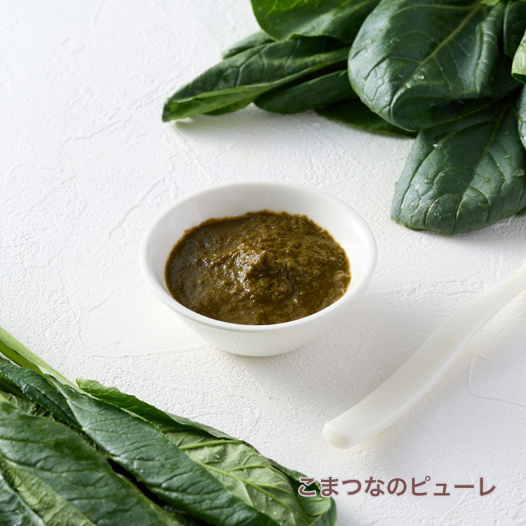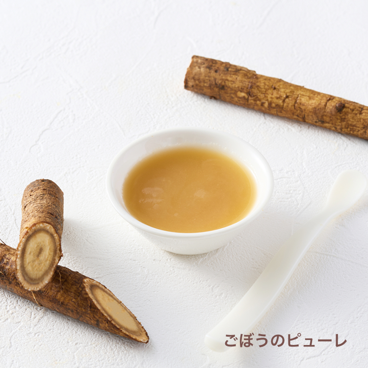 真鯛や鶏ささみなどのたんぱく質食材に、こまつな・さつまいも・ごぼうなどのお野菜を組み合わせ、赤ちゃんがさまざまな素材の味を体験できる内容にしました。なめらかな口あたりで、離乳食初期でも食べやすい仕上がりです。